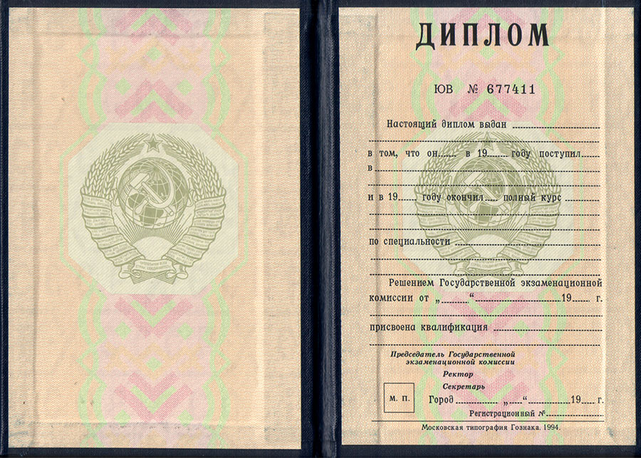 До 1992-1993 года в России выдавались дипломы образца СССР. В некоторых ВУЗах их можно было получить и позже. Заверялись они также печатью советского образца. Если вы потеряли диплом этого периода, то восстановить его будет очень сложно и практически невозможно, так как большинство учебных заведений ныне не существует, а некоторые находятся теперь в другой стране. Именно поэтому может возникнуть необходимость купить диплом СССР. Мы готовы помочь вам в этом вопросе, у нас большой опыт подготовки документов этого периода.